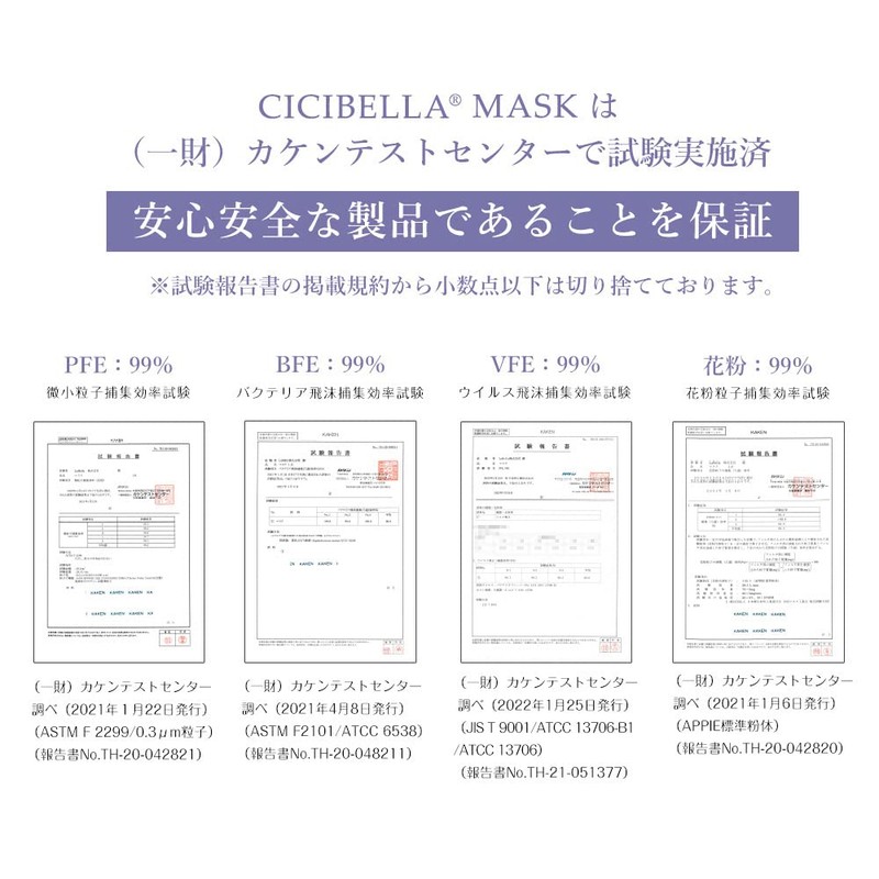 • ■【安心のウイルス対策】BFE(細菌飛沫)・VFE(ウイルス飛沫)・PFE(微粒子)・花粉のろ過効率は99%以上です。機能検査済商品なので、ご安心してお使いできます!