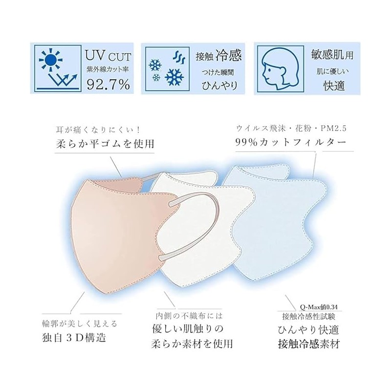- ■【今話題の冷感3Dマスク!】冷感素材でひんやり涼しく、呼吸がしやすく快適なマスク