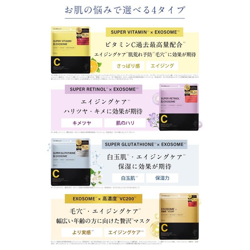 - ■ Super Glutathione x EXOSOME: A penetrating vitamin C derivative and hyaluronic acid plus albutin for a firm white ball skin. Moisturizing, shining, and aging care is all in one!
