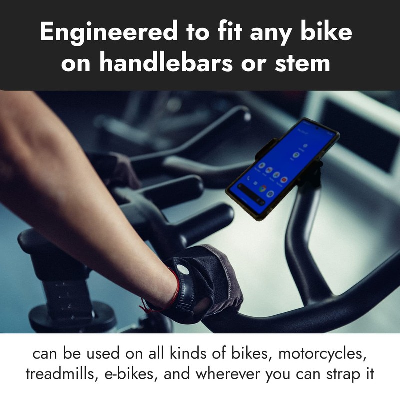 • Versatile & Practical: Thoroughly engineered to fit any bike handlebar or stem. This phone mount can be used on all kinds of bikes, e-bikes, motorcycles, treadmills, and wherever you can strap it! Can even be adapted to golf carts.