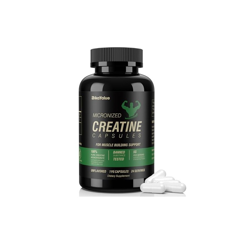 BIKAYALUE Micronized Creatine Monohydrate Capsules, 195 Creatine Capsules Sup...