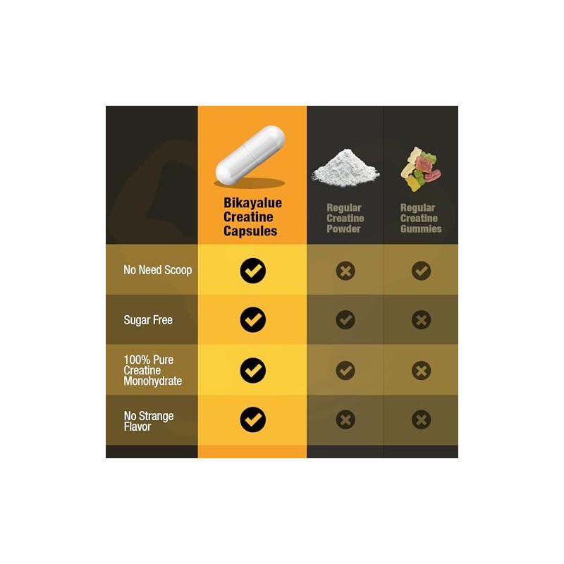 • Good Exercise Partner- Bikayalue creatine pills support strength, muscle build and recovery, power, and performance. The actual effect of this sports nutrition supplement is determined by the frequency of take and individual exercise intensity.