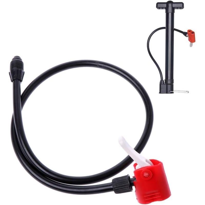 Keep your tires perfectly inflated with this sleek black and red portable bike air pump. Standing at 67cm tall, this floor pump combines convenience with functionality for all your tire inflation needs. The included replacement hose ensures long-term usability and easy maintenance. This versatile tire inflator is ideal for cyclists who need reliable, on-demand air pressure adjustments. The ergonomic design makes pumping effortless, while its portable nature means you can easily transport it between locations. Perfect for home use, this floor pump helps maintain optimal tire pressure for better riding performance and increased tire longevity. Its durable construction and practical features make it an essential accessory for any bicycle owner.