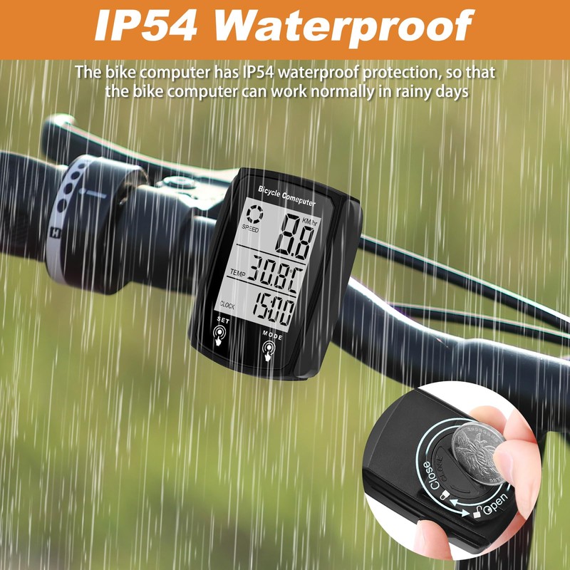 - IP54 Waterproof for All-Weather Durability: Built with durable ABS material and an IP54 waterproof rating, this MTB bike computer withstands rain, dust, and rough conditions; ideal for cycling in any weather; avoid immersion in water for optimal performance