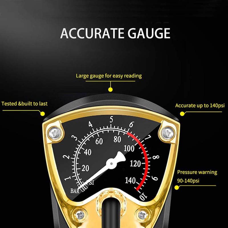 - 【Efficient and Compatible】Equipped with an accurate gas meter and upgraded movement, this pump provides precise air pressure display, unaffected by changes in humidity and temperature. It is compatible with Dunlop, Schrader, and Presta valves, ensuring a wide range of applicability for various inflation needs