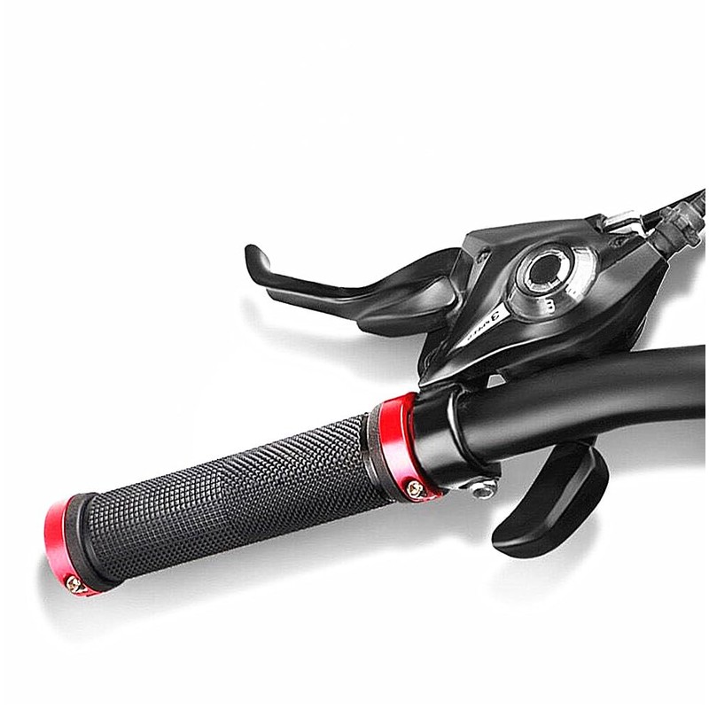 Bike Grips, Double Locking Bike Bicycle Mountain Bike Handlebar Grips, Include with Plastic End Caps, Bicycle Handle Bar Aluminum Alloy Lock Ring