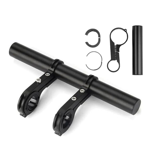 Bike Handlebar Extender Multifunction Double Bike Handlebar Extender Aluminum Alloy Super Long Clamp Bracket Accessory Handlebar Extension Rack for Holding Bicycle Speedometer (Double clamp - 20cm)