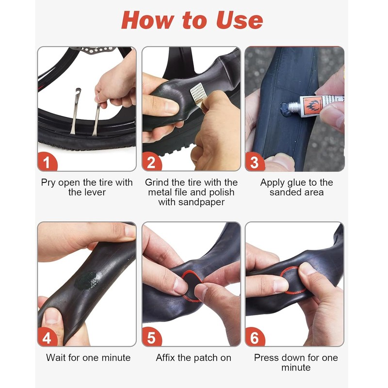 - Simple & portable:The entire bicycle tire patch kit is neatly organized in a sturdy storage box, making it easy to carry and store. The compact design ensures that you can take it with you on rides
