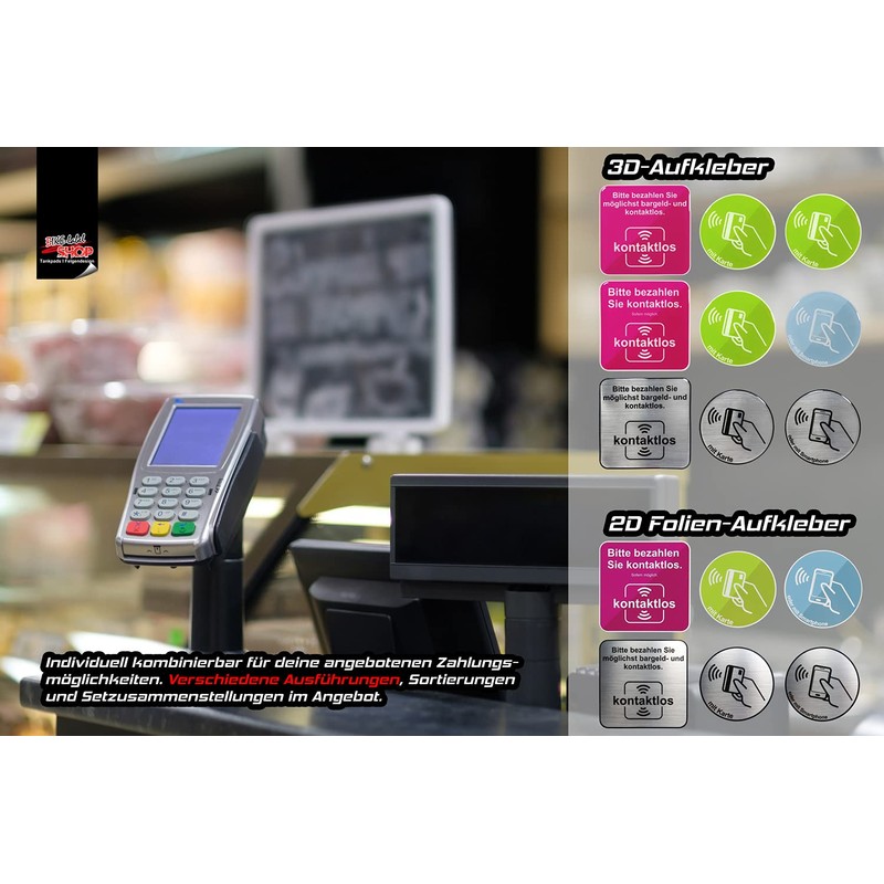 • Pack of 4 signs for cash registration area: pay with smartphone / smartphone payment possible