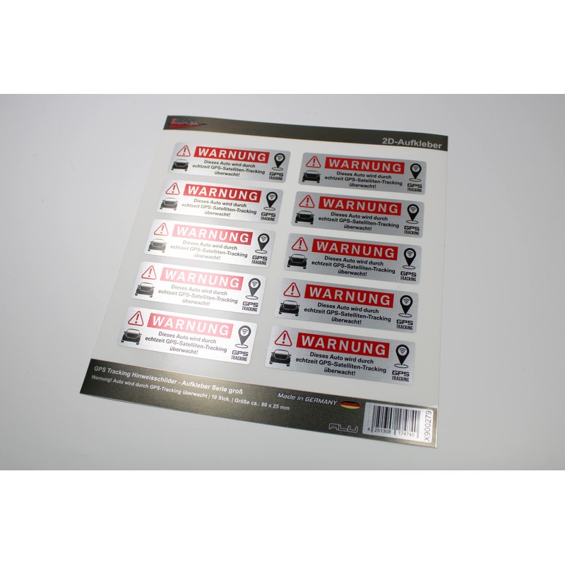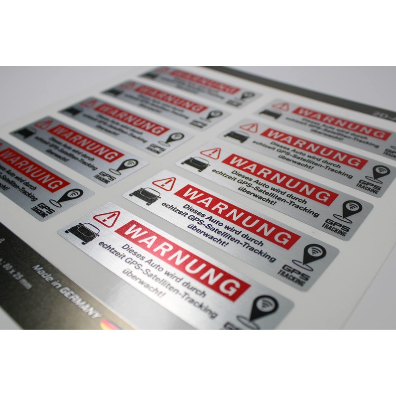 - Sticker set consisting of: Warning! Car is monitored by GPS tracking - 10 pieces. 80 x 25 mm