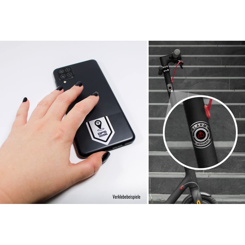 - High-quality premium sticker sets in elegant brushed aluminium look – secure your valuables by indicating GPS tracking for your car, automobile, motor vehicle, car, SUV.
