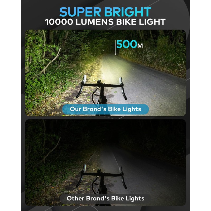 - 10000 LUMENS ULTRA-HIGH BRIGHTNESS BIKE LIGHTS: This bicycle lights features 6 P9 LED beads that increase the lighting range by 50% with a maximum output of 10000 lumens. Our front bike light light your way max up to 500M.This increases your visibility, enhances others’ awareness of your presence, and ensures safer night riding by illuminating the road ahead of you. Victoper bike lights set - better lighting effect, safer night riding.