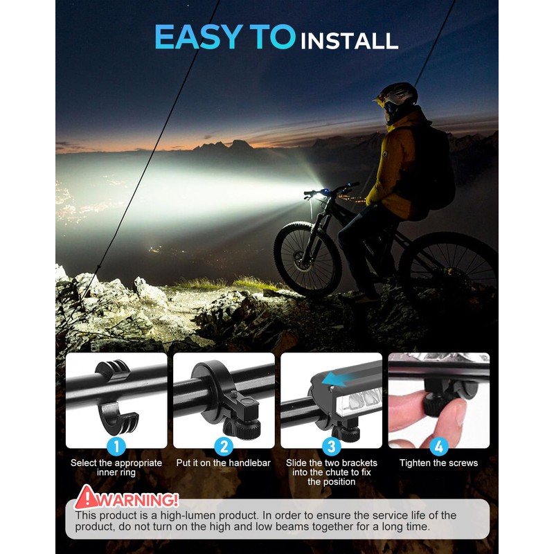 - ANTI-GLARE & MULTIPLE MODES: The rechargeable cycle lights feature 5 modes - Low Beam, High Beam, Full Beam, Strobe and Long press the daytime running lights is always on.The front bike light glare-free design can prevent the beam from directly hitting the eyes of oncoming people. Super bright bike lights set are equipped with free taillights that provide additional visibility and optimal safety. The rear light has 5 modes - constant light, slow flashing, strobe, fast flashing, breathing.