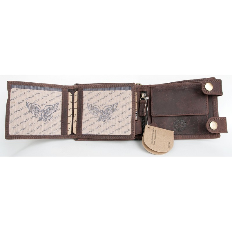 Biker Natural Leather Horizontal Wallet with Eagle and Metal Chain, brown, Casual