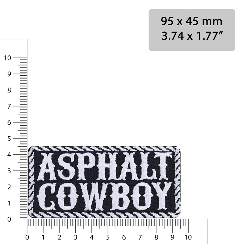 Biker Patch Asphalt Cowboy Iron-On Patch Gift for Motorcyclists Application for Jacket/Waistcoat/Jeans/Motorcycle Suitcase 95 x 45 mm