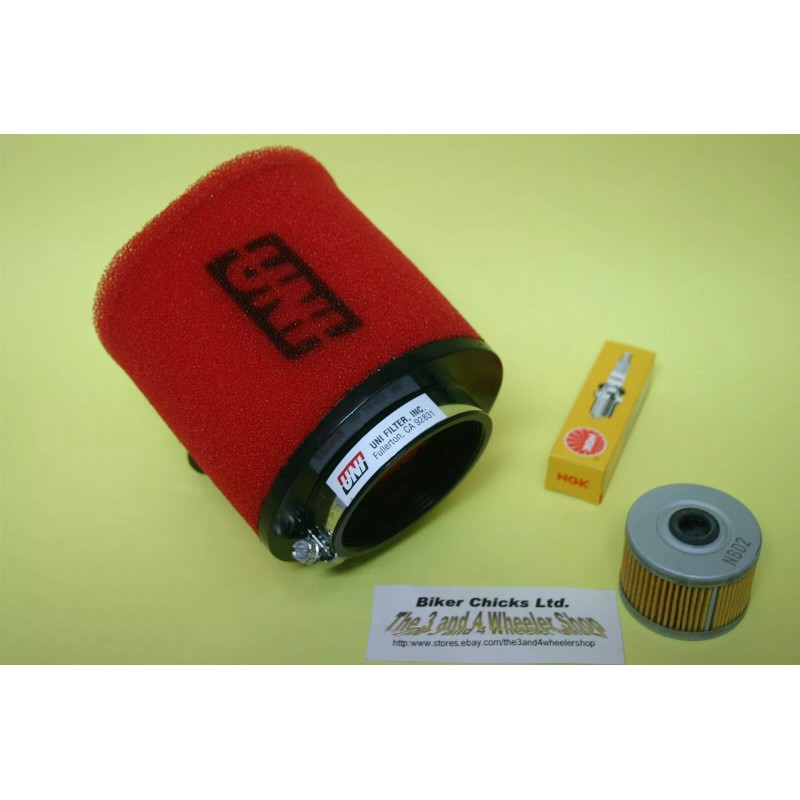 Tune-Up kit includes: (1) Oil filter, (1) Uni air filter for your stock air box and (1) NGK spark plug.