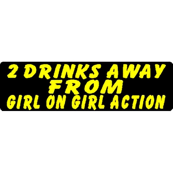 BIKERSTUFFUS 2 DRINKS AWAY FROM GIRL ON GIRL ACTION HELMET STICKER