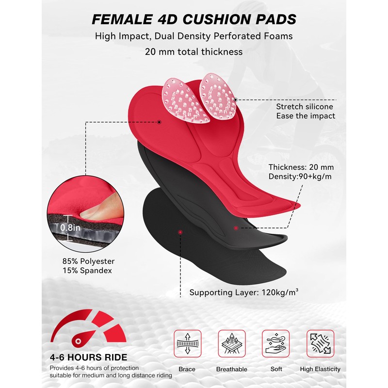 - Upgraded 4D Gel Padding: Featuring advanced 4D gel padding, these shorts offer extra cushioning for long rides, reducing pressure and friction for a more comfortable experience, no matter how many miles you log.