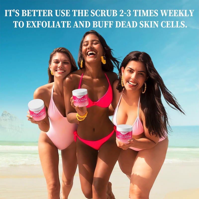 - 【Gently Exfoliates with AHA + BHA】 Our bikini underarm scrub contains 7% AHA (glycolic acid/lactic acid), 2% BHA (salicylic acid) and 1% vitamin C. Gently exfoliates, unclog pores, and smooth bikini areas and armpit skin, making lumps smooth and fading dark spots on intimate areas. Your solution to breakouts, KP, bumps and dryness.