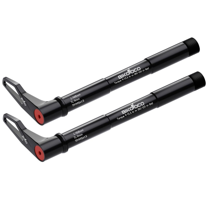 - Measuring at 6.77 x 0.59 x 0.59 in (17.2 x1.5 x 1.5 cm) and with a thread length of 9mm, this adapter is designed to fit perfectly on forks with 15mm x 100mm spacing for Rockshox. The rotating QR handle, with a length of 67mm, ensures optimal mounting angle.