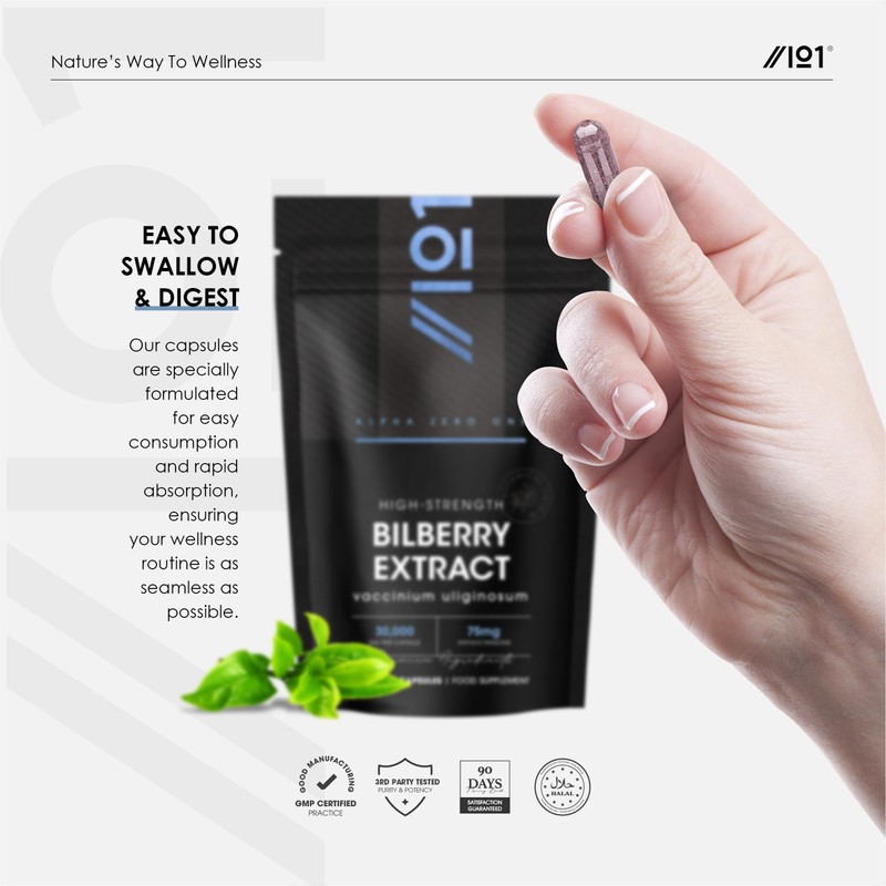 - ✔ HIGH POTENCY BILBERRY EXTRACT: Each capsule contains 7,500mg of Bilberry Fruit equivalent, derived from a potent 50:1 Vaccinium Uliginosum Extract, delivering 25% anthocyanidins for optimal benefits.