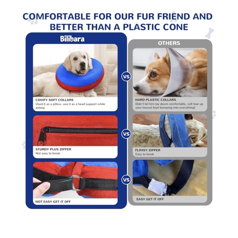 Our collar is made with high-quality materials and is suitable for dogs of all sizes. With 100% customer satisfaction, you can trust that your furry friend will be in good hands with the Bilibara Inflatable Recovery Collar-L. So say goodbye to uncomfortable and restrictive cones and hello to a happier and healthier recovery for your beloved pet.