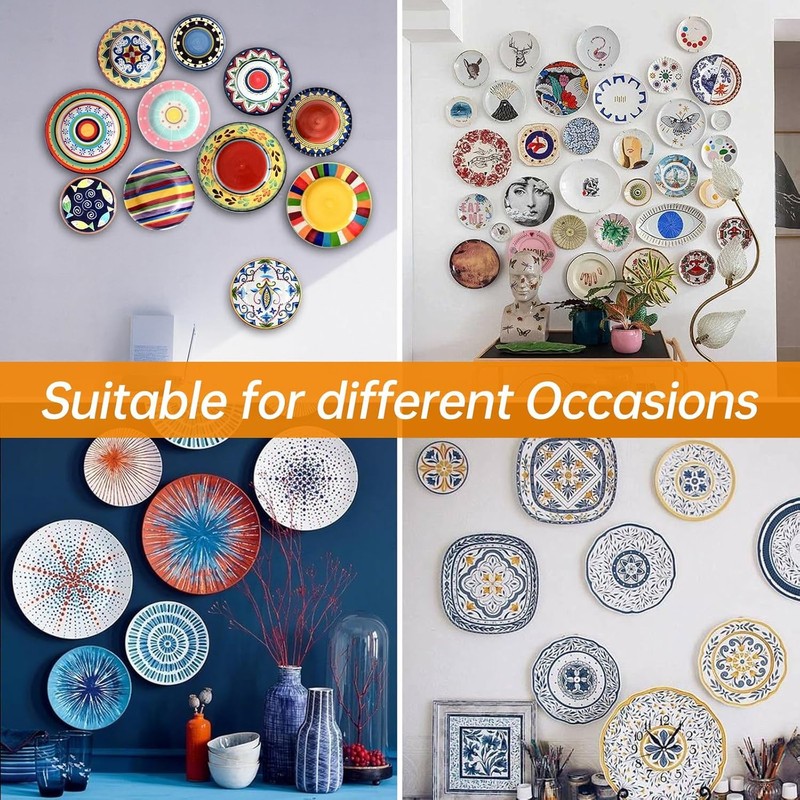• Package Inclusion: Our package includes 6 wall plate hangers, 6 wall hooks, 24 rubber tip protectors, 1 instruction, fit for holding 8-10 inch round or square plates. You can create a variety of arrangements to decorate your plates to fully meet your hanging and display requirements.
