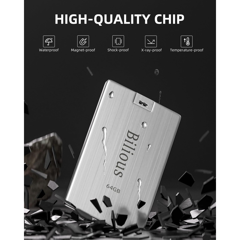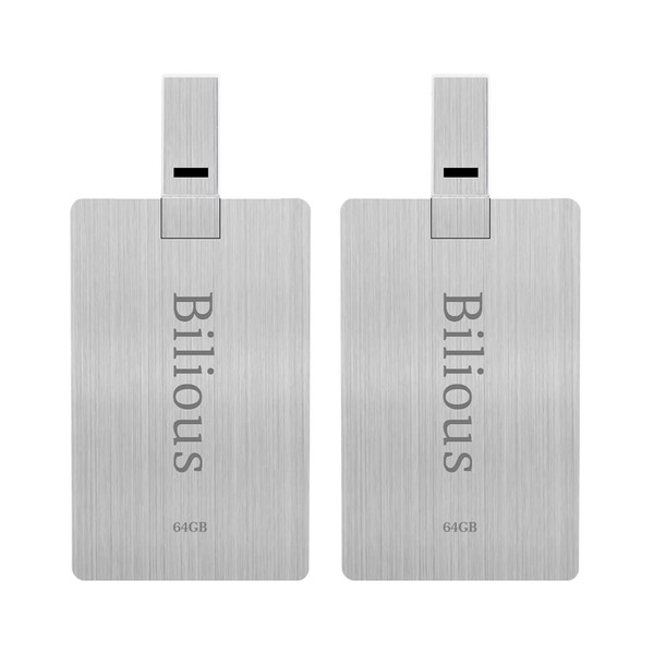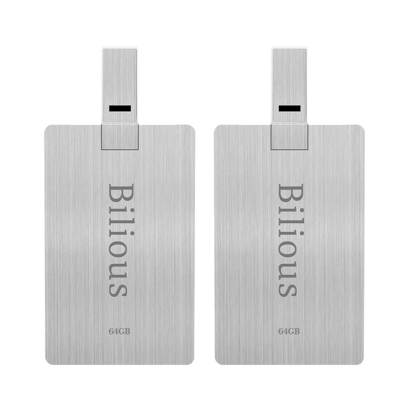 Bilious USB Flash Drive, 2PCS 64GB Metal Credit Card Bank Card Style Thumb Drive Portable Key-Hole Design USB 2.0 Memory Stick, Waterproof Jump Pen Drive for Storage and Backup