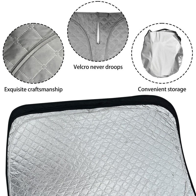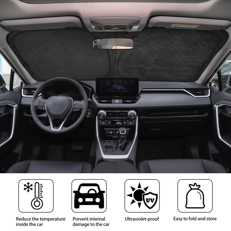 *2、Our front windshield sunshade are made of high-quality materials, blocks UV rays and reduce the temperature inside the car.