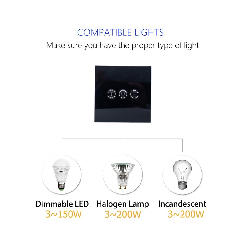 - WIDE RANGE OF SUPPORTED LIGHTING TYPES: Compatible with most bulbs, including incandescent, halogen, dimmable LEDs, and dimmable compact fluorescent lamps, but not with light strips