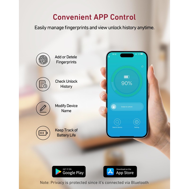 - Convenient App Operation: Simply connect with your phone APP and slide the screen to quickly unlock the gun safe with one click. You can check the remaining battery power in real-time, and you can also easily manage fingerprints, add/delete at will, and set up to 40 fingerprints. View the unlocking record of the user ID at any time to keep track of the unlocking situation. Administrator, unlocking, and connection passwords can also be easily changed to keep the pistol safe under your control
