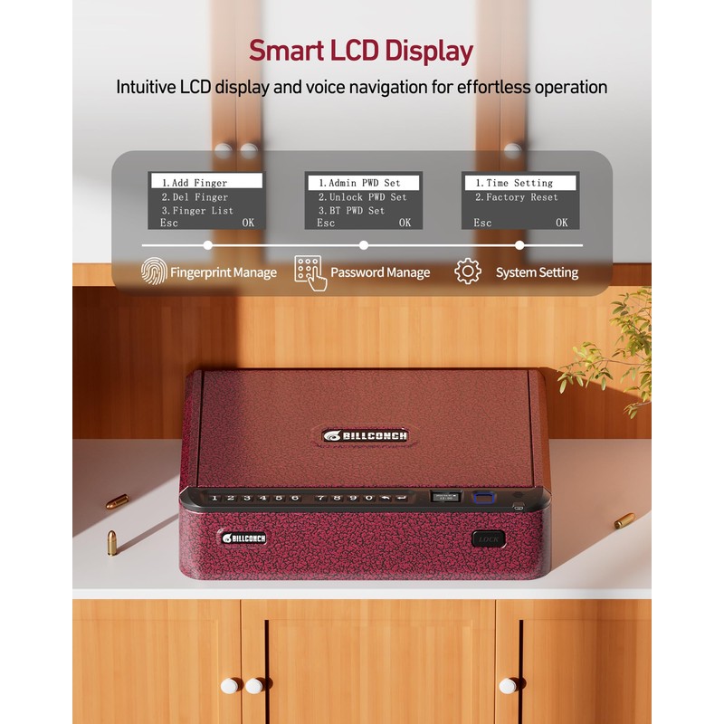 - 5-Star After-Sales Service: We are committed to providing top-notch intelligent gun safes to Protect your home! If you are not satisfied with the quality of the pistol safe product, or the results do not meet your expectations, please contact us through Amazon within the 365-day warranty period and we will provide you with exceptional service and support, including refunds or replacements and more. Rest assured that BILLCONCH's team of handgun safe professionals is always willing to help