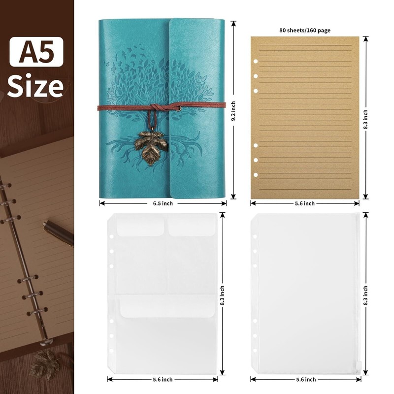 - Package Includes: A5 size: 9.2" x 6.5" leather journal (Perfect size for handbag and schoolbag). 80 sheets/160 pages, 1 pcs Binder Zipper+1pcs Binder Receipt bag