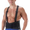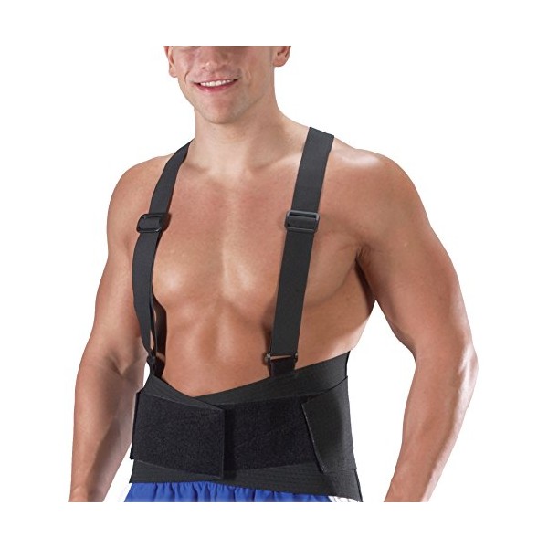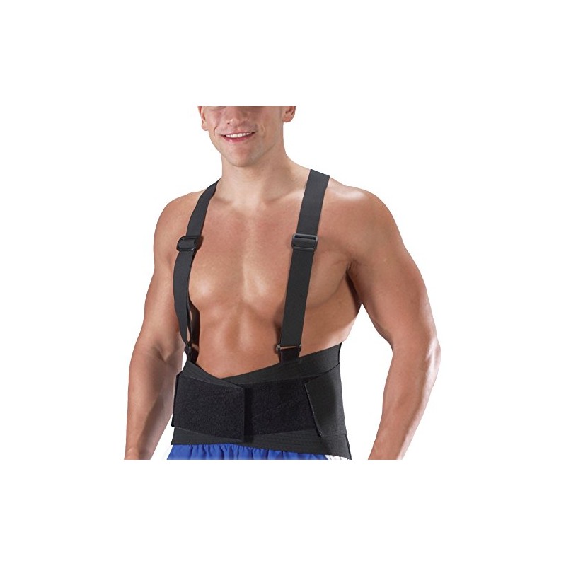 Professionally designed to provide long lasting, lower back support. 8 inch Wide back support. Helps reduce back stress and injuries while encouraging proper body mechanics. Made of a 50 % Spandex/50% elastic. 4 stays to prevent rolling up of support. Adjustable elastic suspenders for comfort and support. Tapered front panels for comfort while bending.