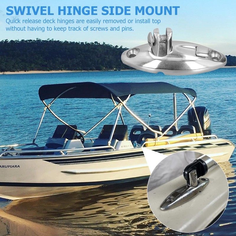 • QUICK RELEASE: The bimini tops for boats use the quick release hinge; this boat bimini top swivel hinge facilitates quick and efficient disconnection and mounting