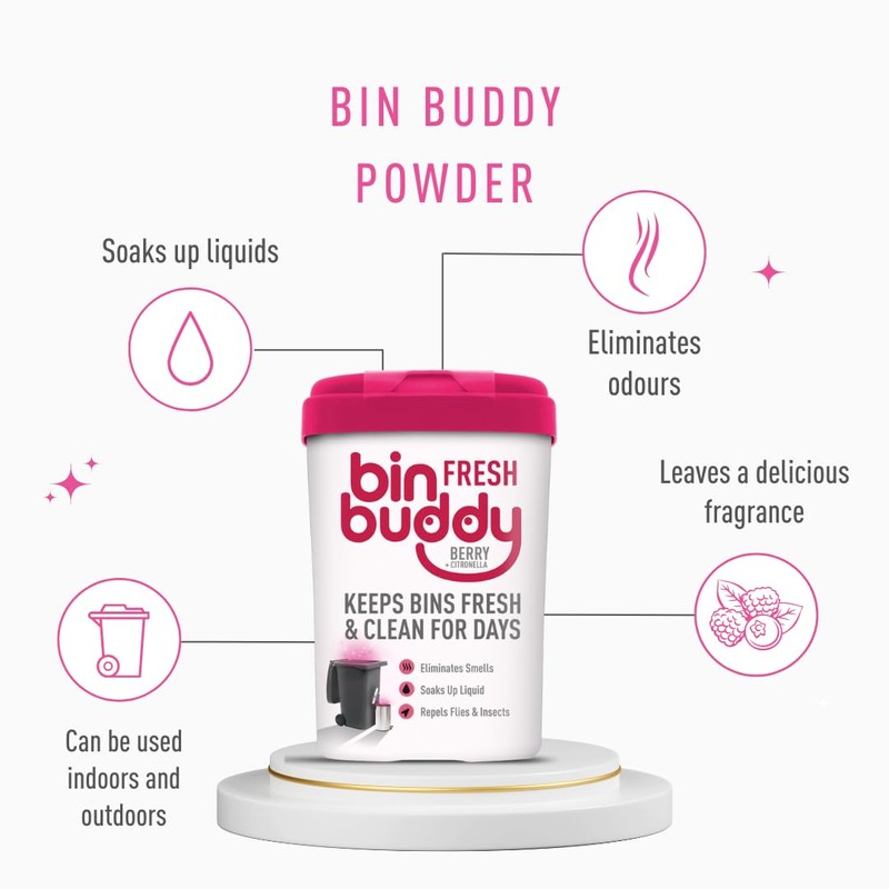 - IDEAL FOR INDOOR AND OUTDOOR BINS — Bin Buddy Fresh Berry Burst deodorising powder can be used in both indoor and outdoor bins; simply shake some powder into the bin every time you use it to keep it smelling great and get the most out of your bin bags!