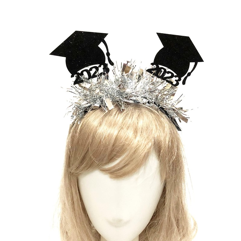 BinaryABC 2023 Graduation Hat Headband Head Boppers,Grad Cap Headband,Graduation Party Favors (Silver)