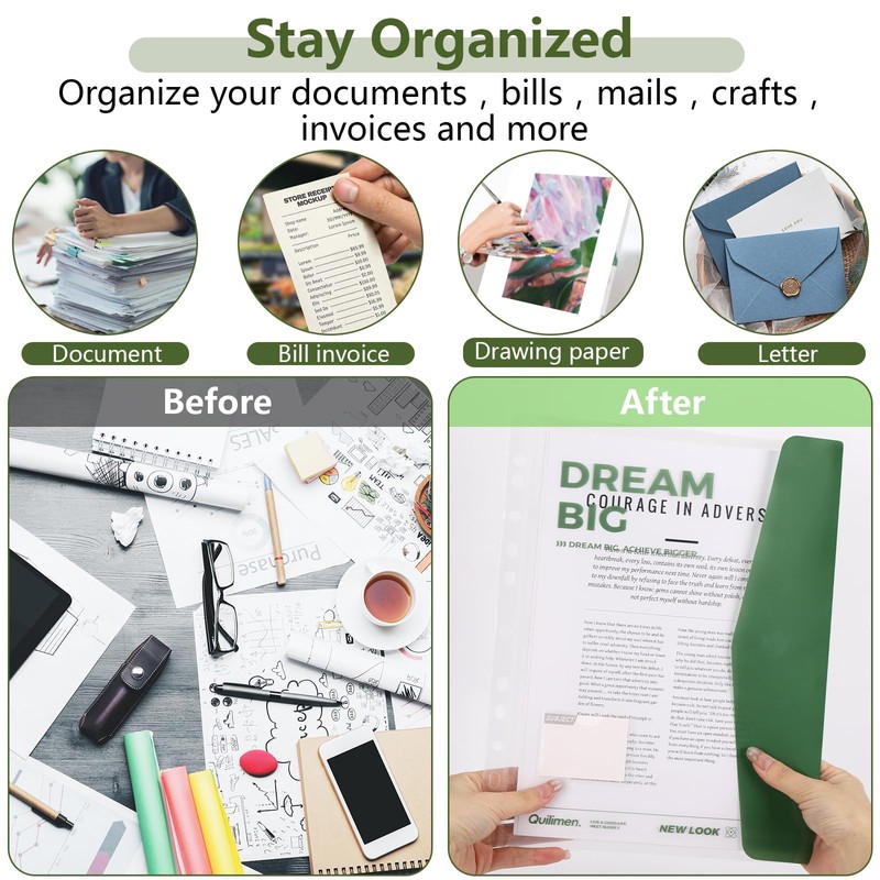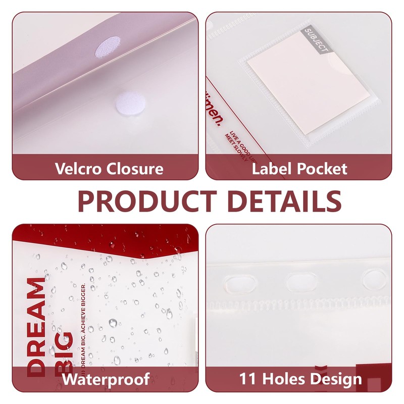 - You'll receive 16-sheet binder pockets measuring 12 x 9.4 inches to hold standard Letter size documents; 11 holes for 2/3/4 ring binders