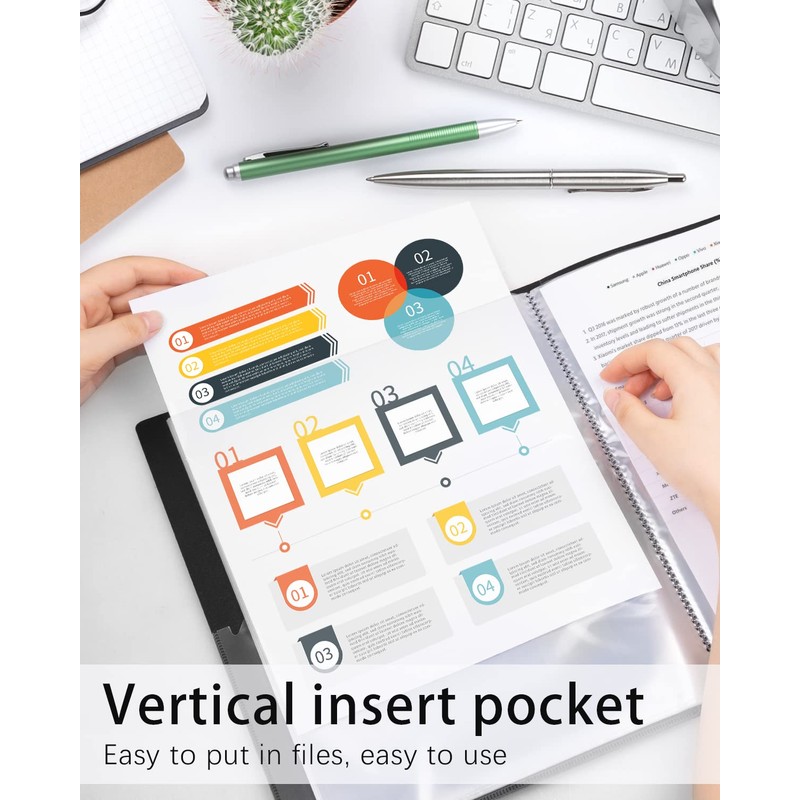 - Clear and Transparent: Black plastic binder clear protective pocket allows you to easily view content, easy to check and sort documents, matte texture, no glare