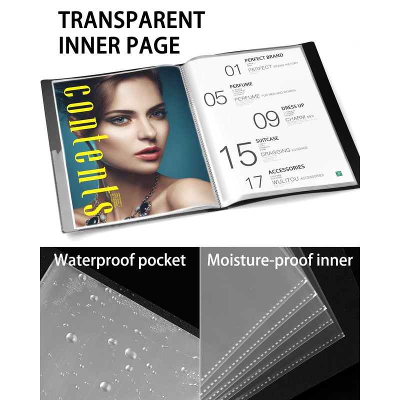 Black presentation books are often used in home, office and other scenarios, and can be used to store your important documents, certificates, posters, projects, scores, etc.