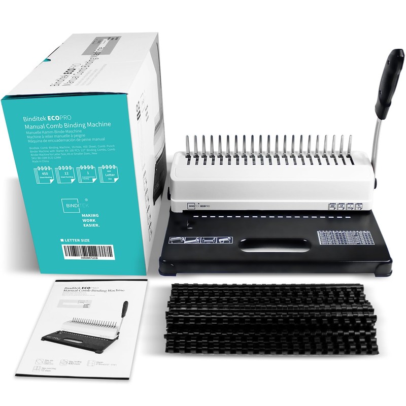 Binditek Binding Machine, 19-Hole, 450 Sheets, Comb Binder Machines with 100 PCS 1/2" Comb Spines, for Letter Size, A5 or Smaller Sizes