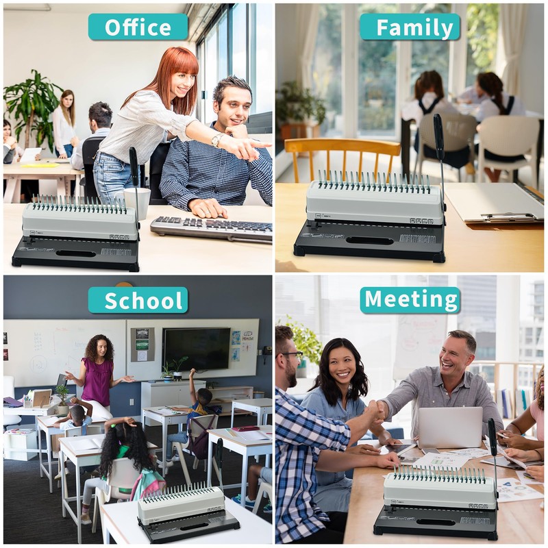 • 【Easy to Use, Just Punch and Bind】The comb binding machine features a dual-functional handle, allowing you to punch and bind in the one machine. This not only saves you time and energy but also make it effortless to create professional-looking bound books at home or in the office. Whether it's reports, manuals, or presentations, this comb binding machine is suitable for all your binding needs.