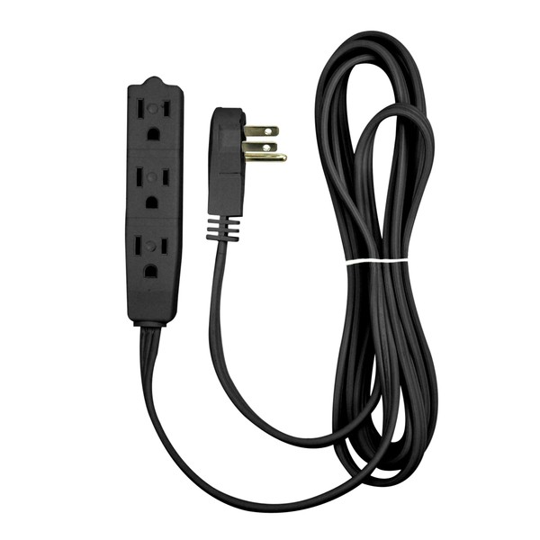 * 3 Outlet Capacity * Acts like a mini power strip * 3 Prong Grounded Protection *Angled * 20 Foot Length * Heavy Duty Cord * Durable Construction * Lays Flat Against Wall * UL Listed * 13Amp 125Volt * 1625 Watts * White