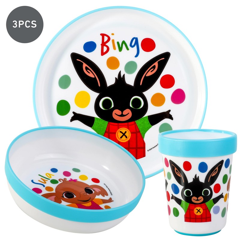Bing 3pcs Reusable Bicolor Premium Kids Dinner Tableware Set Plate, Bowl & Tumbler, BPA Free