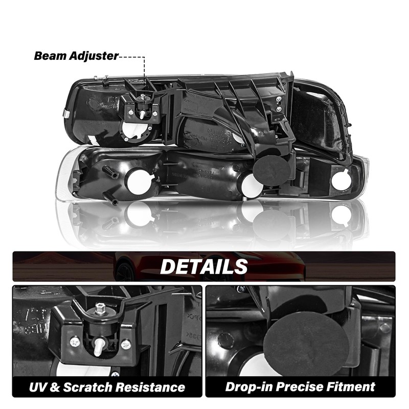 • 【HIGH STANDARD】High-quality driver and passenger side halogen type headlights meet all high-standard safety requirements. The upgraded housing is impact and heat resistant, ensuring better durability compared to other headlamps. Superior lenses have good light transmission, high toughness and excellent UV resistance to prevent yellowing and cracking.