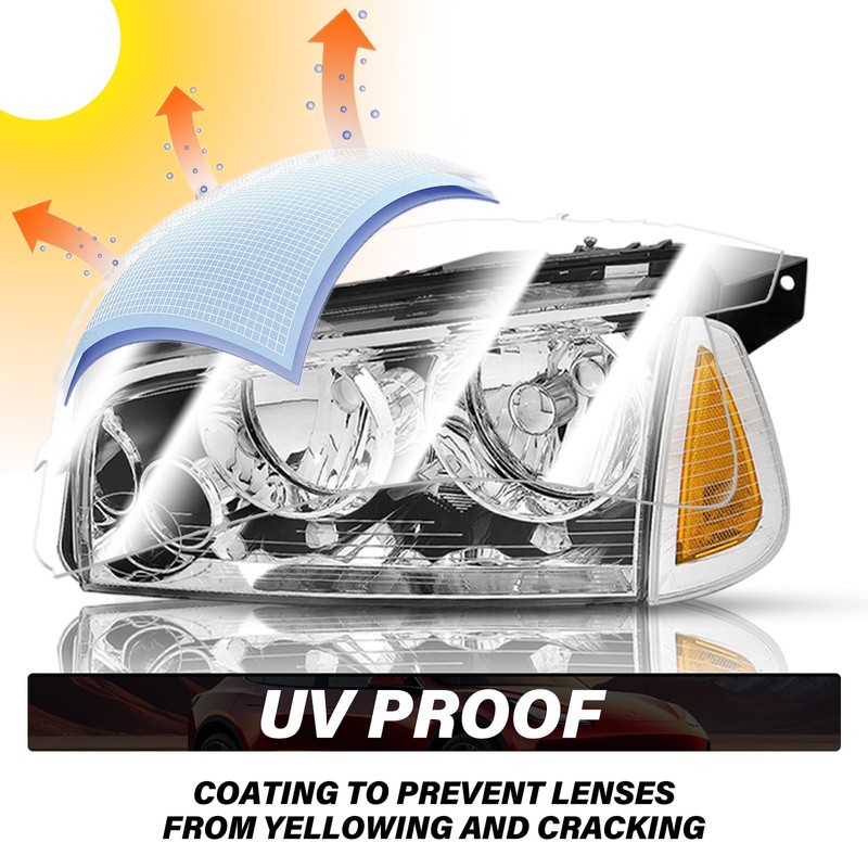 - 【DOT & SAE CERTIFIED】High-quality driver and passenger side halogen type headlights meet all DOT and SAE certified safety requirements. The upgraded housing is impact and heat resistant, ensuring better durability compared to other headlamps. Superior lenses have good light transmission, high toughness and excellent UV resistance to prevent yellowing and cracking