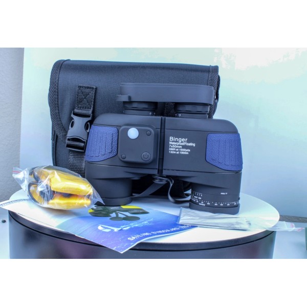 Experience the wonder of the seascape with the BINGER 7x50 Marine Binoculars, designed specifically for marine applications. With features such as a built-in rangefinder and compass, long eye relief, and an anti-reflection coating, these binoculars offer both functionality and enhanced visual clarity. The robust construction is water-resistant and weather-resistant, ensuring durability against the elements.These binoculars come equipped with a wide strap, lens cover, and lens cloth, making them convenient to carry and protect. Whether you're scanning the horizon or enjoying a nautical adventure, the BINGER binoculars are a reliable companion for your marine escapades.