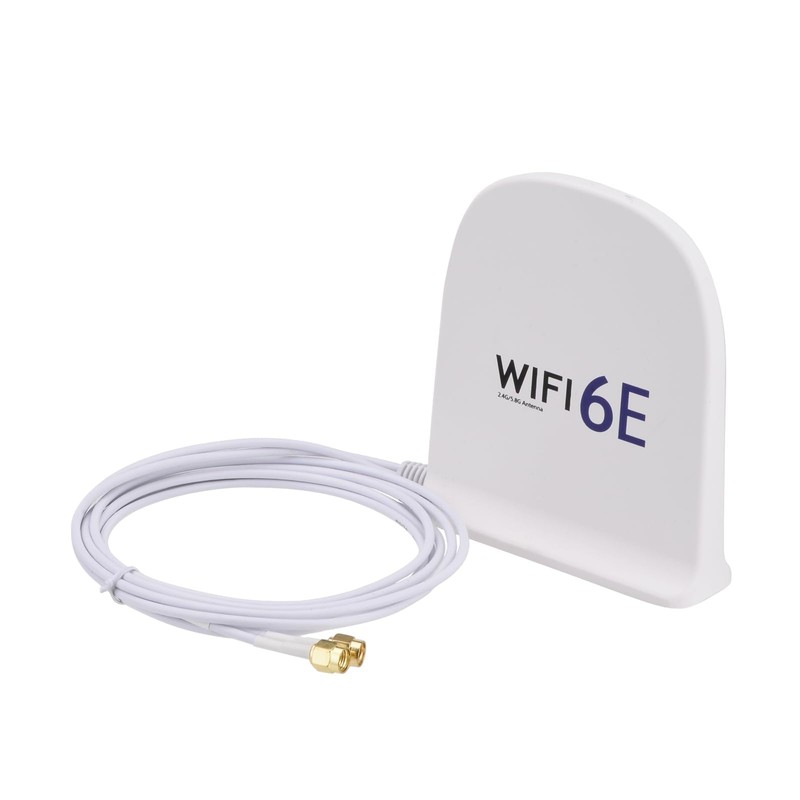 - Tri-Band WiFi: 2.4g(2400-2500MHz)/5g(5150-5850MHz)/6g(5900-7125MHz); Support 802.11 b/g/n/ac/ax/wifi 6/wifi 6e; Gain: 8dBi; Direction: Omni-directional; Antenna Connector: RP-SMA Male Connector