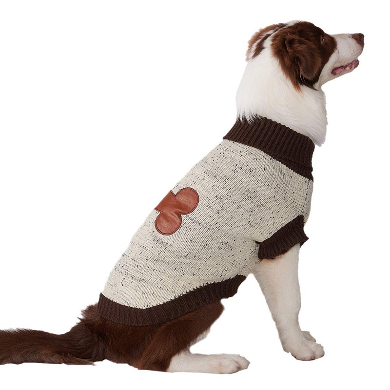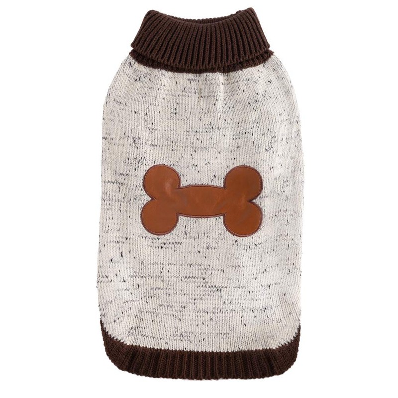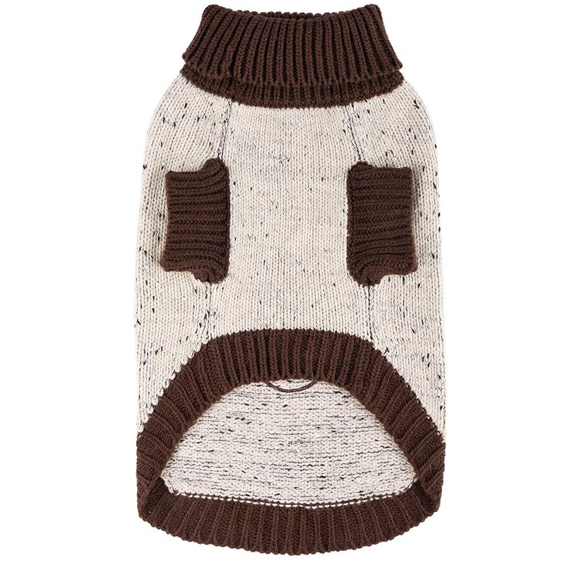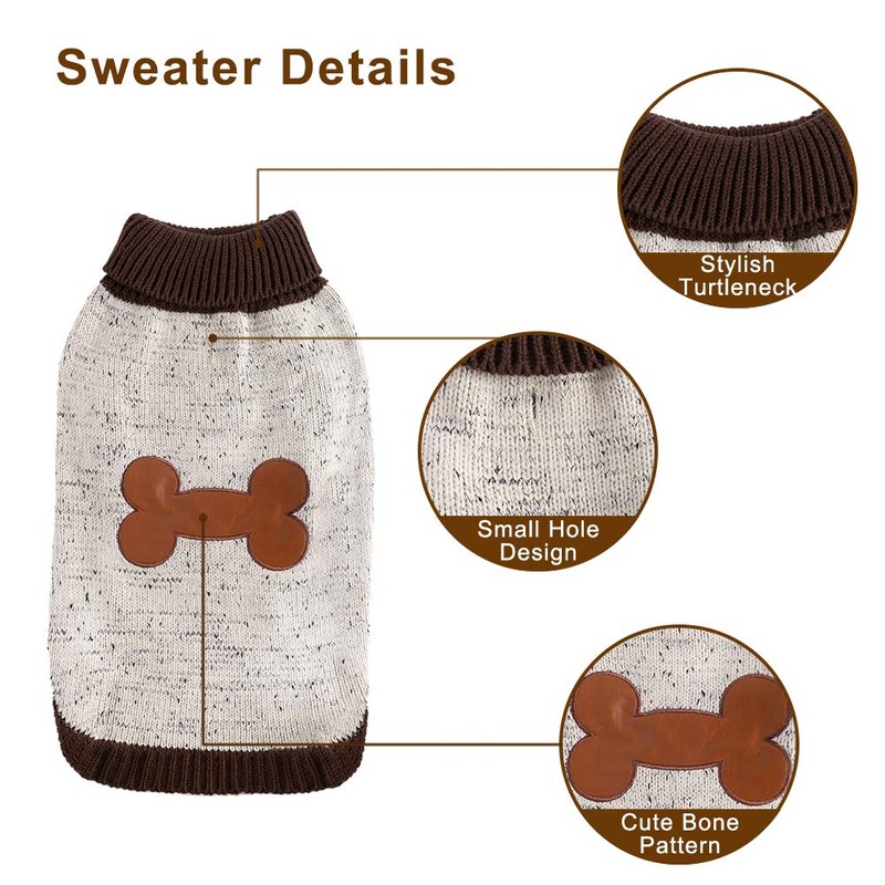 BINGPET Dog Turtleneck Sweater Bone Pattern Winter Warm Sweater for Small Medium Dogs Brown