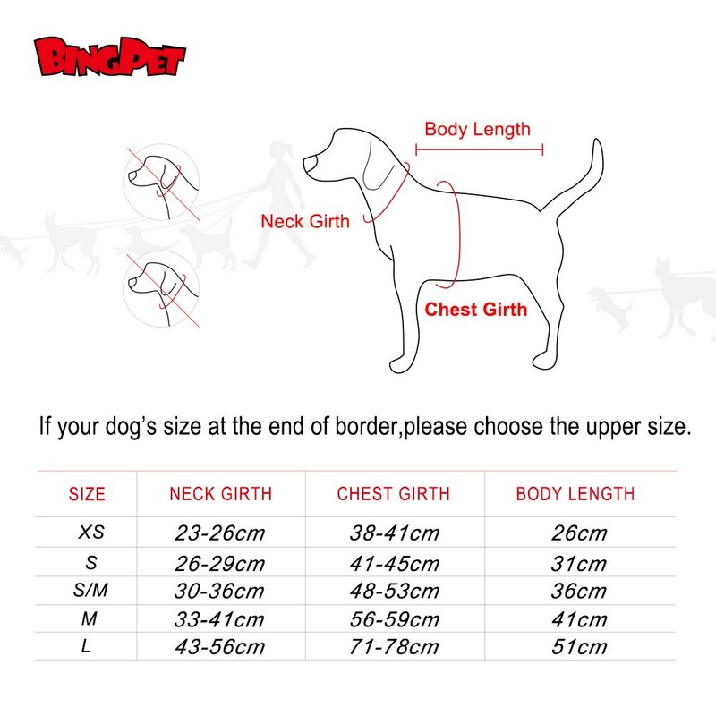 - Size: XS: Neck 23-25cm, Chest Girth 38-41cm, Back Length 26cm; S: Neck 25-29cm, Chest Girth 41-45cm, Back Length 31cm; SM: Neck 31-36cm, Chest Girth 48-53cm, Back Length 36cm; M: Neck 33-41cm, Chest Girth 56-58cm, Back length 41 cm, L: neck circumference 43-56cm, waist 71-78cm, back length 51cm, size